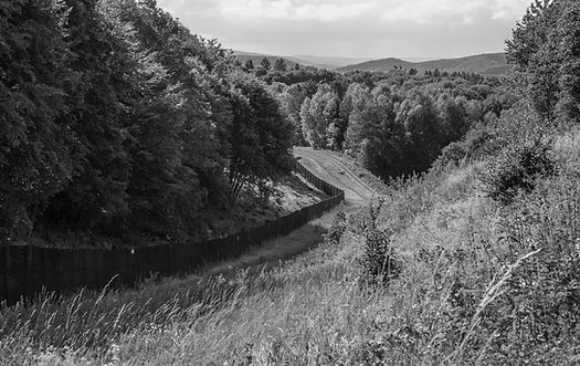 Tôt ce dimanche matin, sur une petite route de campagne le long de la frontière fantôme, j'aperçois un homme et une femme. Ils ne portent rien d'autre qu'une serviette autour de la taille.