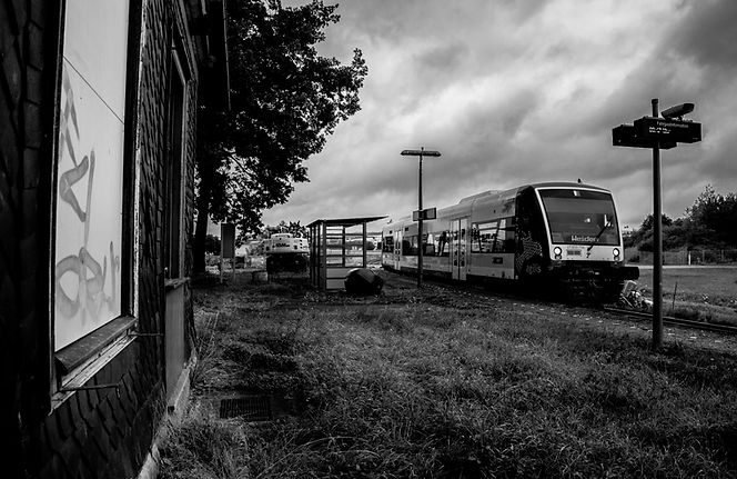 Arrêté à un passage à niveau, je saisis mon appareil. Attentif à mes réglages et à la vitesse du train au moment de la prise de vue ce n'est que le soir venu, en triant mes photos, que je remarque le tag sur le mur : "No Nazis"...