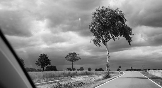 La veille au soir une violente tempête a provoqué des chutes d'arbres et certaines routes ont été coupées. De déviation en déviation, je m'efforce de coller à la frontière.