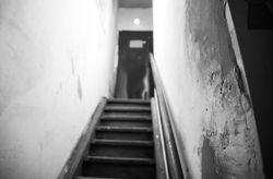 The ladder gave access to the attic, but it was much too unsteady and neither of us climbed any higher than the third rung...